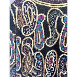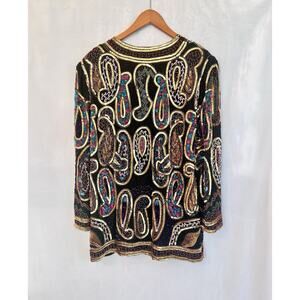 Laurence Kazar Vintage Silk Evening Tunic LARGE Beaded Sequined Glam EUC *READ