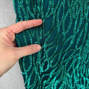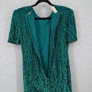 Laurence Kazar Womens VTG Silk Cocktail Party Dress Size M Green Sequin Beaded
