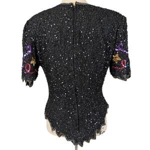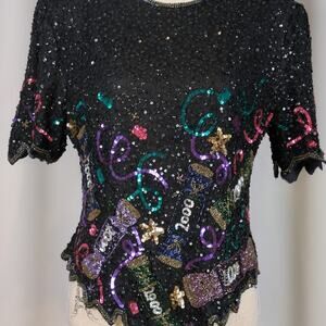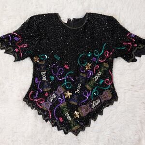Vintage Laurence Kazar Y2K 2000 Beaded Sequin Cocktail Top New Year’s Eve