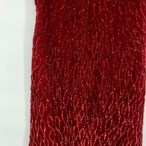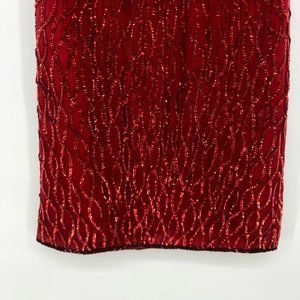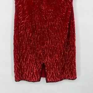 Laurence Kazar red sequin embellished dress Vintage Silk Pattern Petite Small PS