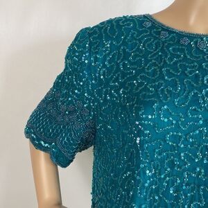 Laurence Kazar green sequins silk short sleeve dress size XL