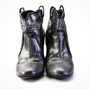Laurence Dacade Nico Cracked Metallic Block Heel Ankle Booties Silver Size 37