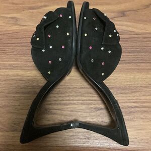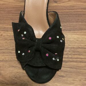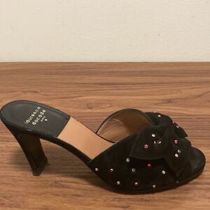 Laurence Dacade Black Suede Bow & Crystal Accent Mule. Size 38/8.