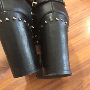 Previously worn and in great condition some scratches on the heels I’ve included pictures. Leather looks great and no studs are missing. The shoes retailed for over $900.