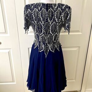 Laurence Kazar Exceptional Vintage Silk Hand Beaded Dress Bridal Formal