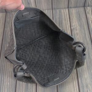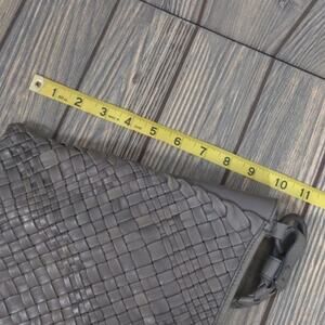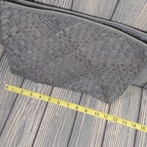 Very gently used, clean condition. No inside pockets. Weave design soft leather. Little wear.