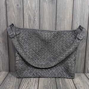 Laurent Effel St Barth Italy Leather Shoulder Bag Purse Woven Olive Green Gray