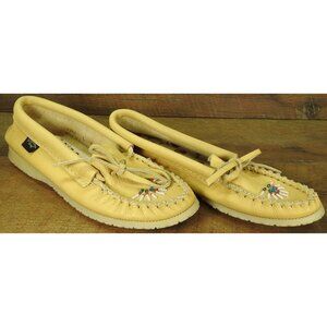 Laurentian Chief Moccasins Beaded Yellow Deer Hide Hard Sole Canadian Size 5