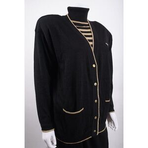 Laurette Par le chois Womens Knit Midi Skirt Cardigan Sweater 3pc M Black NWT
