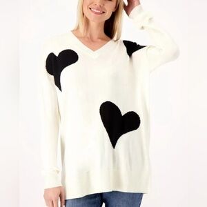 Laurie Felt Cashmere Blend Heart Sweater Cream and Black