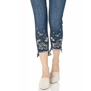 Floral embroidery detailing on leg