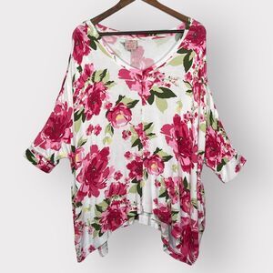 Laurie Felt Fuse Modal Knit Pullover Tunic Top Women Size PM/PL Pink Floral