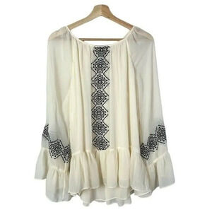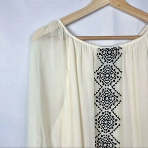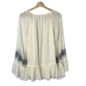 Laurie Felt Ivory Cream Embroidered Peplum Boho Long Sleeves M