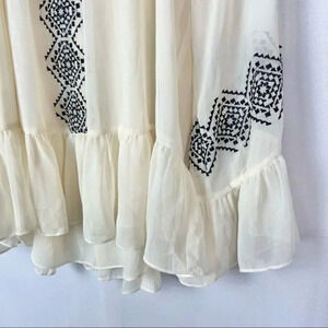 Laurie Felt Ivory Cream Embroidered Peplum Boho Long Sleeves
