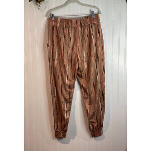 Polyester/Spandex Brown & Pink Comfortable jogger pants with a relaxed fit, featuring a stylish striped pattern. The blend of polyester and spandex ensures flexibility and ease of wear.