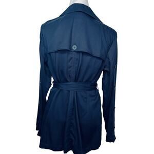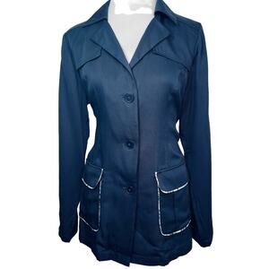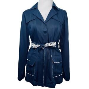 Laurie Felt Navy Fitted Belted Utility Jacket Blazer Contrast Printed Belt Sz 8