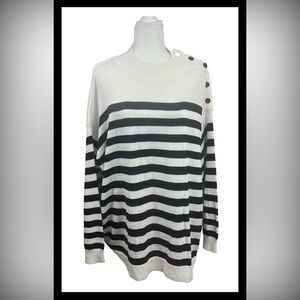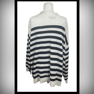 Laurie Felt Paris Mock Neck Black White Striped Pullover Sweater Plus Size 3X