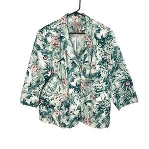 Tropical Floral Linen Blazer 24W – Laurie Felt, Resortwear, Lightweight, Button Front