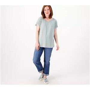 Laurie Felt Sage Cotton Rayon Made From Bamboo Smocked Shoulder Tee Size S