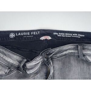 Laurie Felt Los Angeles Silky Ankle Skinny Jeans Zipper Black Grey Stretch High Rise 2XP/22-24