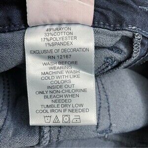 49% rayon/ 33% cotton/17% polyester/1% spandex, exclusive of decoration.