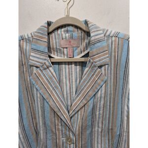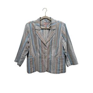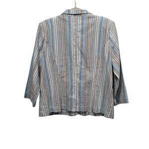 Laurie Felt Striped Linen Blend 3/4 Sleeve Cropped Blazer, Size 16