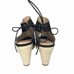 Laurie Felt Suede Wedge Espadrille Women's 11M Black Lace Back Peep Toe Boho