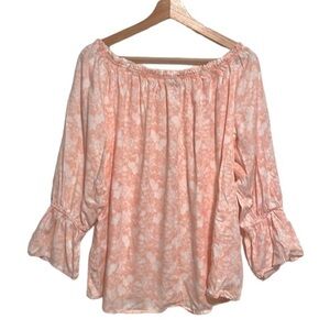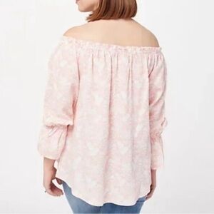 Laurie Felt Tencel Lace Printed Top Blouse Off the Shoulder Floral Pink Medium