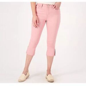 Laurie Felt Womens 14 Regular Wave Denim Capris Pockets Zipper Detail Blush NWOT)