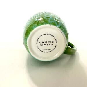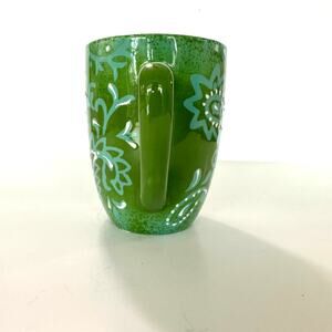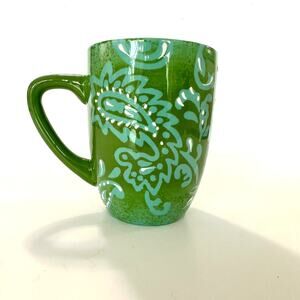 Laurie Gates Green Hand Painted Paisley Stoneware Mug 14 oz 4.75 Tall