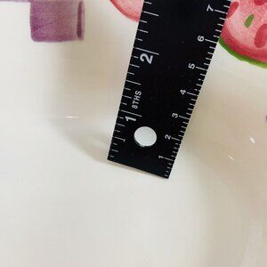 • Hand-painted vegetable motifs with purple checkerboard trim