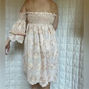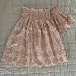 Laurie & Joe Pastel Peach Embroidered Boho Flower Strapless Babydoll Dress - M/L