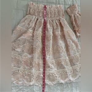 Laurie & Joe One of a Kind Pastel Peach Lacey Embroidered Flowers Strapless Babydoll Dress -