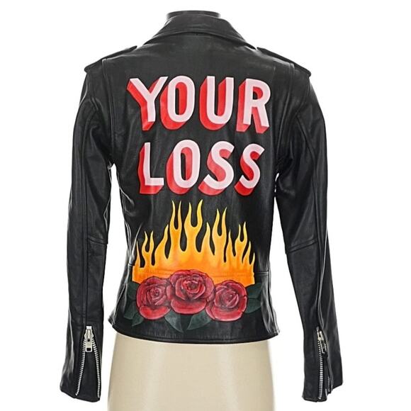 Laurie Lee Custom Painted Leather Biker Jacket Your Loss Moto Style Napa Leather