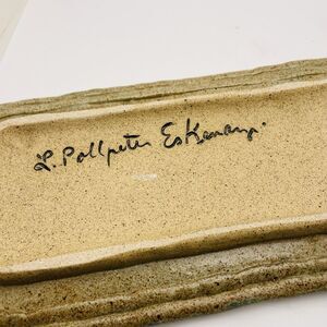 The tray is made by L. Pollpeter Eskenazi and is an original piece that is signed by the artist. It is made of high-quality stoneware material and is designed to be oven, microwave, and dishwasher safe, making it a practical choice for everyday use. This tray is perfect for serving trinkets, jewelry, or other small items and will surely impress your guests.