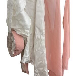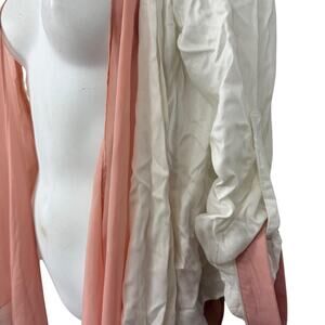 Laurie Solet LS Womens White Pink Open Boho Jacket Lightweight Roll Tab Sleeve M
