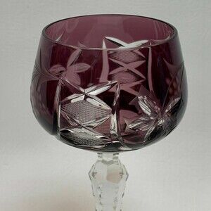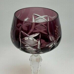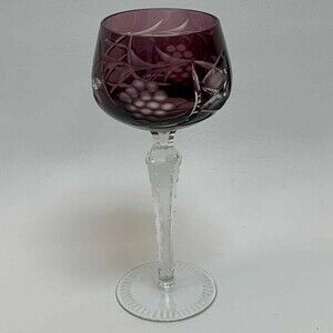 Lausitzer Cut Glass Wine Stem Purple Amethyst Grapes Crisscross