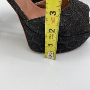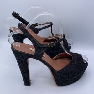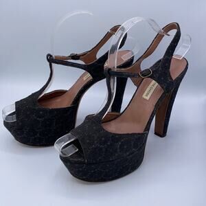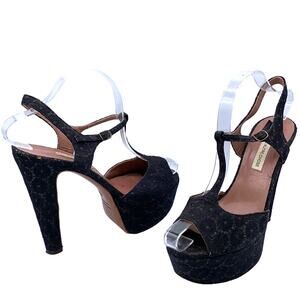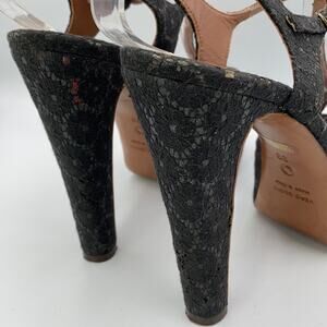 L'autre Chose Black Floral Lace Leather Ankle Strap Open Toe Platform Sandals 39