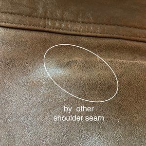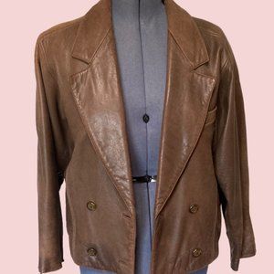 This is a lovely item in very good condition given it's an original from the 80's. Super soft, good quality leather. Photos show any notable changes in color or scuffs on leather - note last photos. Lining in good condition. This would also fit a slim waisted man - shoulders are generous - mine are broad and it fits me well in shoulders and sleeve - it was my partner's when he was young and slim :) Measurements when laid flat: Chest 42" (hard to say due to style which is very loose) Length - center from back of collar to bottom: 21": Shoulders: 19" seam to seam. Sleeve length: 23". Circumference where it sits on my hips at the very bottom of the jacket: 38" (I'm more like 40 here so it hitches up a little, but that's also the style).