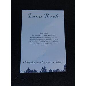 Lava rocks are believed to promote calmness, determination, and balance (as noted on included card)