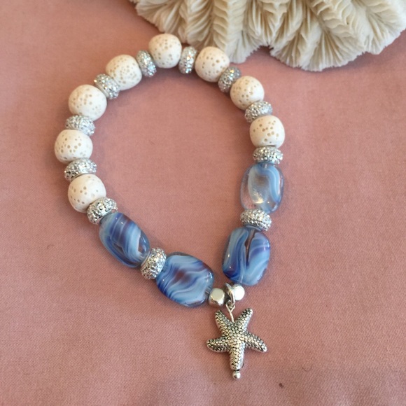 I designed this diffuser bracelet to help bring emotional tranquility, relaxation and a sense of calmness. It also features light blue glass lentils, a silver toned starfish and silver findings for a finishing touch. Place a drop or 2 of essential oils on the lava beads to diffuse. Lava stones have various healing properties and are part of the chakra. They help bring strength, courage, reduces negativity, increases energy, assertiveness and protection.