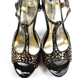 Lava Black Gold Animal Print Heels Sandals 9.5