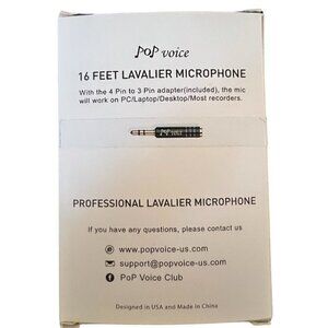 PoP voice 16 Feet Lavalier Microphone for 3.5mm Devices, Android and Camera - Noise Cancelling Lapel Mic TRRS Omni Mic for Phones, TikTok, Video Recording (with a TRS Adapter, 2 Clips and 4 Covers)