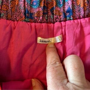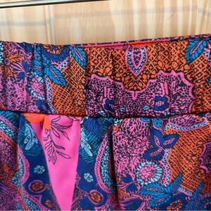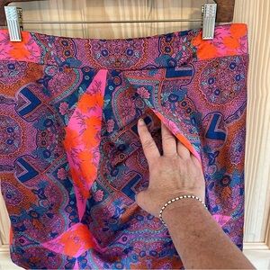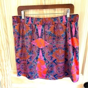Lavand. Faux Sarong Miniskirt. Size Large. Excellent condition. Elastic waist. Fully lined. Silky feel. Very vibrant colors!