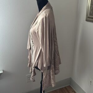 Lavanya open cascade front dusty rose crochet detailing cover up cardigan sz XL