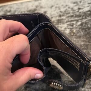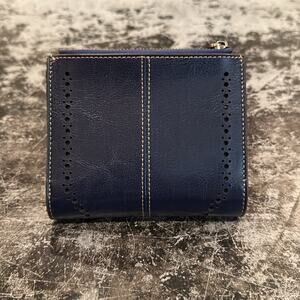 Elegant navy blue leather wallet with intricate detailing. Perfect for organizing your essentials in style! Excellent condition.