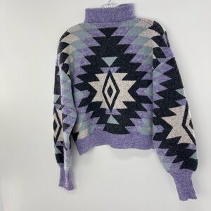 Lavender Aztec Pullover Sweater Size M Fuzzy Warm Cozy Art you Wear sweater