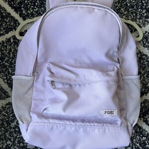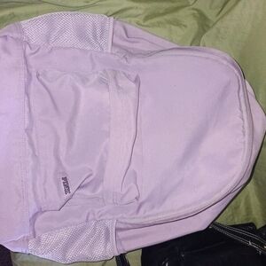 PINK by Victoria Secret lavender backpack with front pocket and mesh sides.