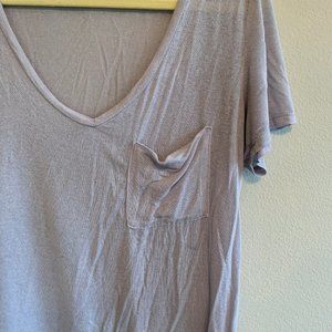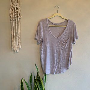Lilac/lavender/light purple basic tee. Slightly sheer. Flowy or could be tied up in the front. Slouchy pocket.