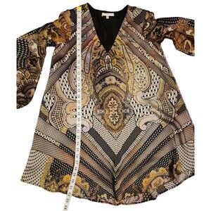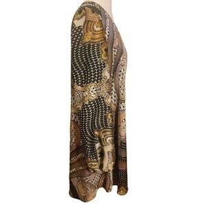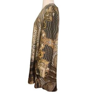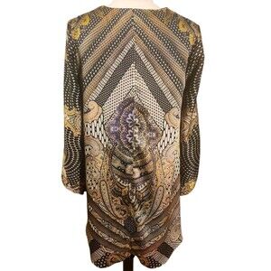 Lavender Brown Artsy Minidress Womens XS Boho Lavender Batik Print Blouson Shift